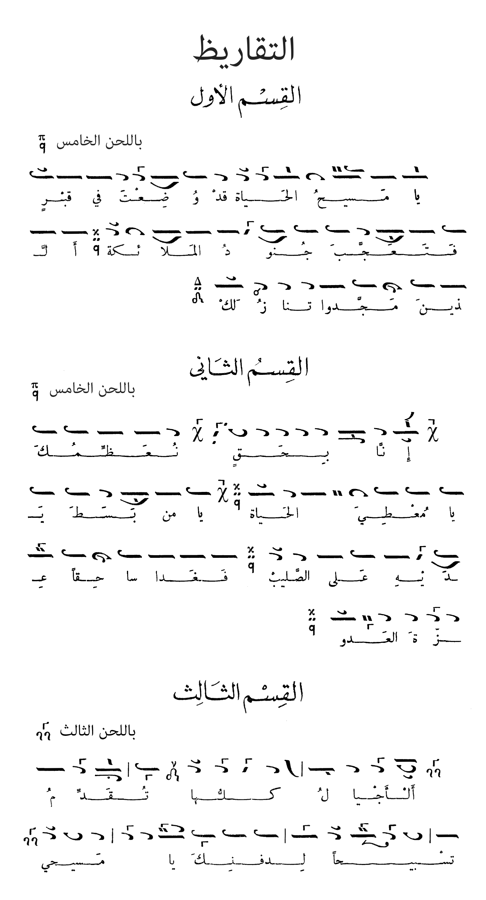 التقاريظ: القسم الأوّل (يا يسوع الحياة) والثاني (إنّا بحق) والثالث (الأجيال كلّها)
